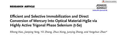 2025年3月20日,能源环境材料领域的顶刊《Advanced Functional Materials》(影响因子18.5)在线刊发了永利yl23411集团中方导师、能源与动力工程公司煤燃烧与低碳利用全国重点实验室赵永椿教授团队题为“Efficient and Selective Immobilization and Direct Conversion of Mercury Into Optical Material-HgSe via Highly Active Trigonal Phase Selenium (t-Se)”(高活性三角晶型硒(t-Se)高效高选择性汞固定并直接转化光学材料硒化汞)的论文。永利yl23411集团官网为第一完成单位,赵永椿教授为通讯作者。