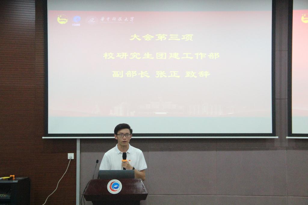 会议第三项,张正同学为本次大会致辞。张正先是肯定了中欧研会在过去一年的工作成果,同时也向新研会的成员们分享了宝贵的员工工作经验:一是要有全心全意为同学服务的观念,帮助同学们解决切身的实际问题,二是正确处理好学习、工作、科研三者之间的关系,坚持提升自我完善自我。在之后的工作中,校研会与院研会要继续加强合作,为进一步提高研会水平、促进员工的全面提高而努力。