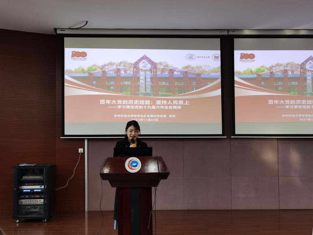 会议进入第二个环节,本环节公司诚邀研究生红色理论学讲团的黄莉同志为大家宣讲十九届六中全会精神。黄莉同志以“百年大党的历史经验:坚持人民至上”为主题,以党的百年奋斗历程为脉络,从新民主主义革命时期、社会主义革命和建设时期、改革开放和社会主义现代化建设时期、新时代中国特色社会主义时期四个历史阶段讲述中国共产党为中国人民谋幸福、为中华民族谋复兴的初心使命,讲述中国共产党人始终保持同人民群众血肉联系的历史经验。。