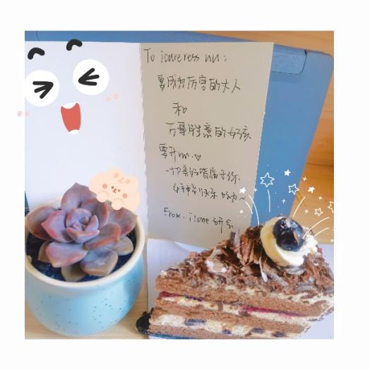口味丰富的蛋糕,种类繁多的小盆栽,还有研会成员亲手写的祝福语,在中欧新的一年也要甜蜜蜜的~