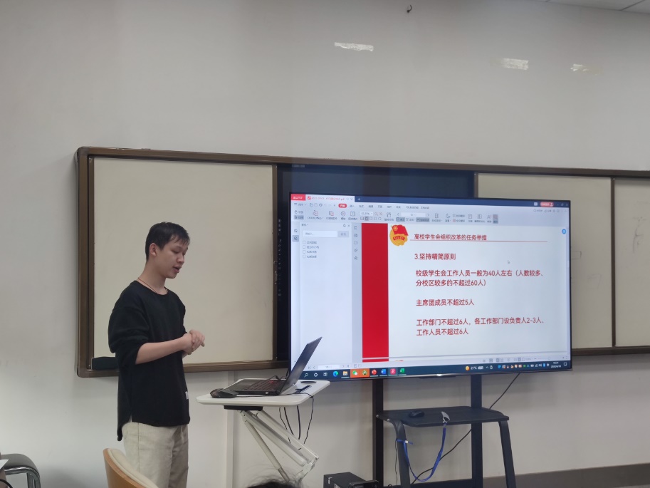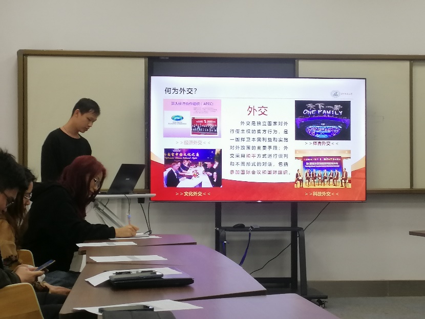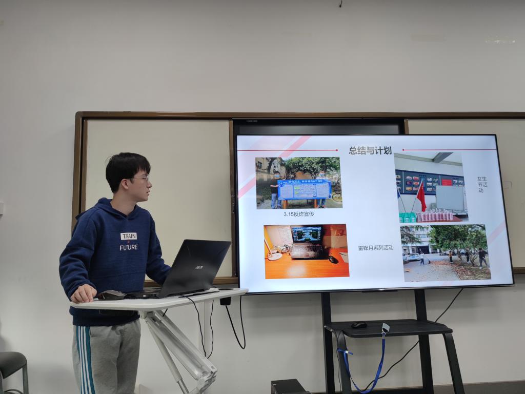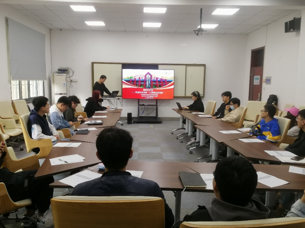 会议第一项是微党课学习,主题为“新时代外交——科技外交中的人类命运共同体”,卢奕鑫向大家生动地介绍了何为科技外交,以及当前中国所面临的复杂外交环境,强调了人类命运共同体的概念,并号召全体成员作为新时代中国的青年人应该牢固树立四个自信,以奋斗的姿态在新能源科技领域不断地贡献自己的中国力量。
