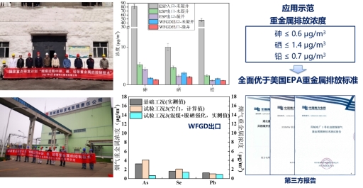 燃煤重金属控制技术是项目团队历经20余年的研究成果,受基金委面上、“863”、基金委创新群体、科技部国合项目、基金委国际合作重大项目、国家重点研发计划项目以及企业项目等长期支持。采用“科学问题突破—关键技术研发—装备开发与集成—示范工程”的技术路线,基于“形态定向转化并固定”思想,将炉内与尾部调控技术相结合,促进细颗粒态和气态重金属向粗颗粒态和易溶态转化,实现燃煤电厂不同浓度重金属高效控制。该技术与超低排放技术互补,具有模块化、可移植性强的特点,既可单独使用,又可以组合使用来满足烟气特点和排放需求。模块化特点使其燃料、炉型、工况和成本适应性强,不仅适应不同煤种,还适应生物质、污泥、城市生活垃圾等燃料的耦合掺烧;不仅适应煤粉炉,也适应流化床等炉型;不仅适应电力行业,也可拓展至非电行业。在3台300MW以上机组的技术验证表明:燃用典型重金属煤种排放浓度达到砷≤0.6 μg/m3,硒≤5.1 μg/m3,铅≤0.9 μg/m3,燃用高重金属煤种排放浓度达到砷≤1.3μg /m3,硒≤1.4 μg/m3,铅≤0.7 μg/m3,排放指标全面优于美国EPA重金属排放标准,并且脱硫废水运行成本较传统工艺降低79.2%,产生的沉淀污泥减少83.5%,脱硫污泥由危险废物降为一般固废。