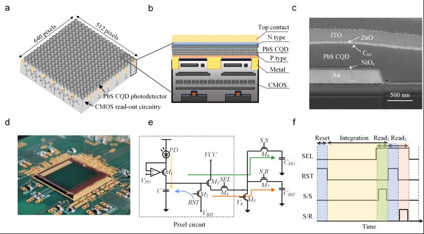 受加工温度高和单晶外延生长等工艺限制,现有的短波红外成像芯片主要采用异质集成的方式实现红外光电二极管与硅基读出电路(ROIC)互联,面临工艺复杂、大规模生产难、成本高等问题。例如,基于InGaAs红外成像芯片的商用相机价格为数万美元,高昂的价格使红外成像芯片难以在智能手机、自动驾驶等领域应用。