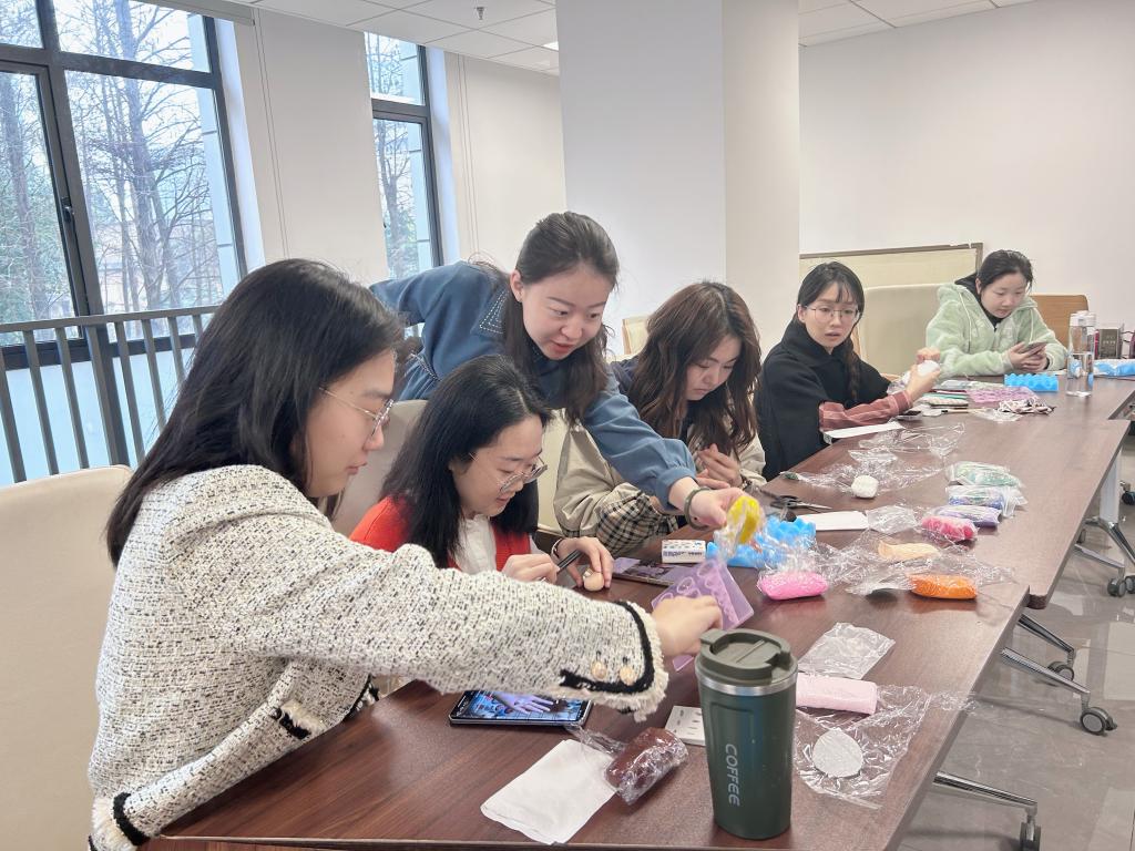 3月8日上午,公司研究生会在清洁能源大楼S309举办了“三月樱蕾暗香溢,中欧女生展才艺”妇女节黏土手工制作活动,此次活动由公司行政老师冯曼指导,共有6名女教师和15名女同学参加。活动伊始,冯曼讲解了关于色彩的知识,带领师生领略色彩的美以及学习如何更好的运用色彩进行搭配。随后,在冯曼的指导下,师生们通过揉、捏、搓、贴等方法,充分发挥自己的想象力和创造力,把水晶粘土塑造成型,制作出许多五颜六色、活灵活现的作品。一揉一捏间,提高师生们的动手能力唤醒了师生创作的灵感,kitty猫,海绵宝宝、哆啦A梦、小黄人、向日葵等一个个活灵活现的作品凝聚着师生们天马行空的想象力和超赞的动手能力。小小粘土,创意无限,此次活动不仅加强了公司师生之间的交流与沟通,也让大家在创造美、欣赏美、感受美的过程中,享受到了创作的乐趣,共同感悟美好生活,陶冶艺术情操。