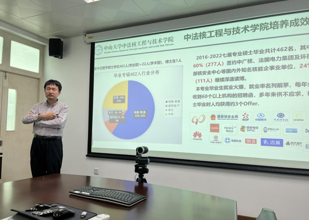 5月15日下午,调研团队来到教育部和广东省政府共同支持建立的首个中法工程师公司-中山大学中法核工程与技术公司(以下简称:中法核公司),该公司书记徐瑶、副经理袁岑溪等接待调研团一行。袁岑溪向调研团介绍了中山核公司教学与人才培养情况,分享了公司第二轮法国工程师职衔委员会(CTI)评估认证经验,并就调研团成员提出的课程设置、团队管理、招生指标、实习实践等方面的问题进行了回答。随后,双方就合作办学机制体制构架、中法双方沟通交流机制、质量保障体系建设等议题进行了热烈的交流讨论。邹明清对中法核公司的细致分享表示感谢,并简要介绍了永利yl23411集团办学情况及调研目的,赞扬了中山核公司通过引入法方合作大学联盟优质资源,不断完善顶层设计,优化培养模式,提供多元赛道,提升人才培养质量,反哺母校促进学科发展所作出的前瞻性探索,相信此次交流学习将极大地启发公司国际化建设思路,推动合作办学提质增效。