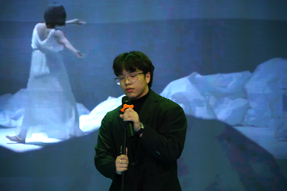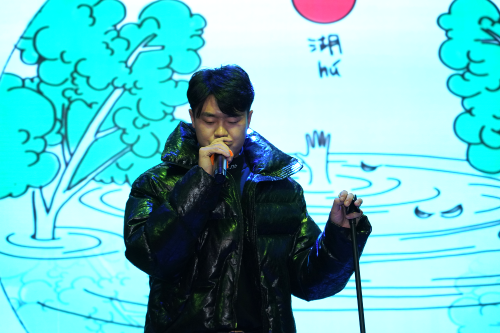 当一片湖爱上一朵云,她的瞬息万变让人着迷,决定了爱便誓死不休。我们每个人都是湖,会遇到喜欢的云。杨宇凡同学带来说唱《湖》,深深地引起了观众们的情感共鸣。