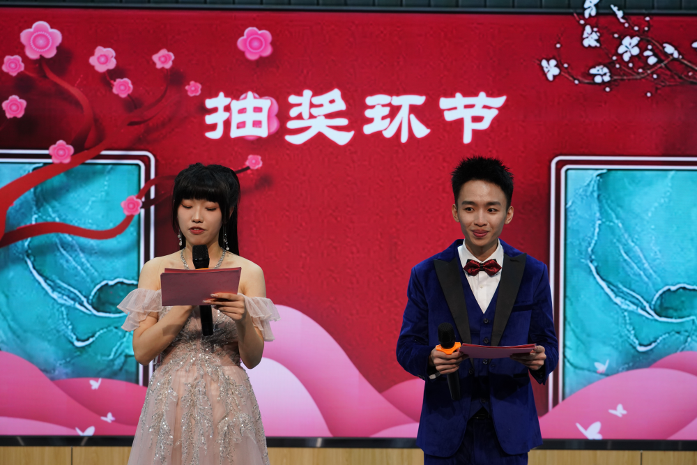 激动人心的抽奖环节到了,本轮抽奖产生9位幸运观众,分别获得充电宝、体重秤、鼠标垫、精美书签等礼品。同时,精彩纷呈的节目怎么能少得了游戏来增添趣味呢?“就要对着干”、填字游戏,观众们都争先恐后地参加,现场欢笑声、欢呼声不断。